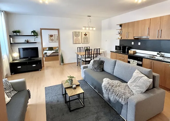 La résidence spacieuse se trouve dans le quartier "Staré Mesto". Le domicile de 75 m² est à environ 1 km du Musée du transport. La Terrasse d'observation UFO est également à une courte distance en voiture.